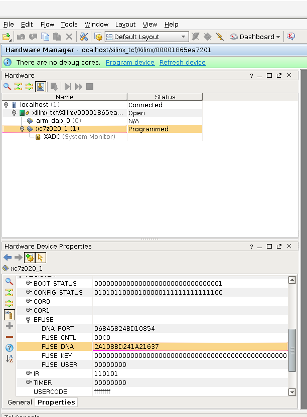 | set DNA_HEX [get_property REGISTER.EFUSE.FUSE_DNA $DEVICE] | |