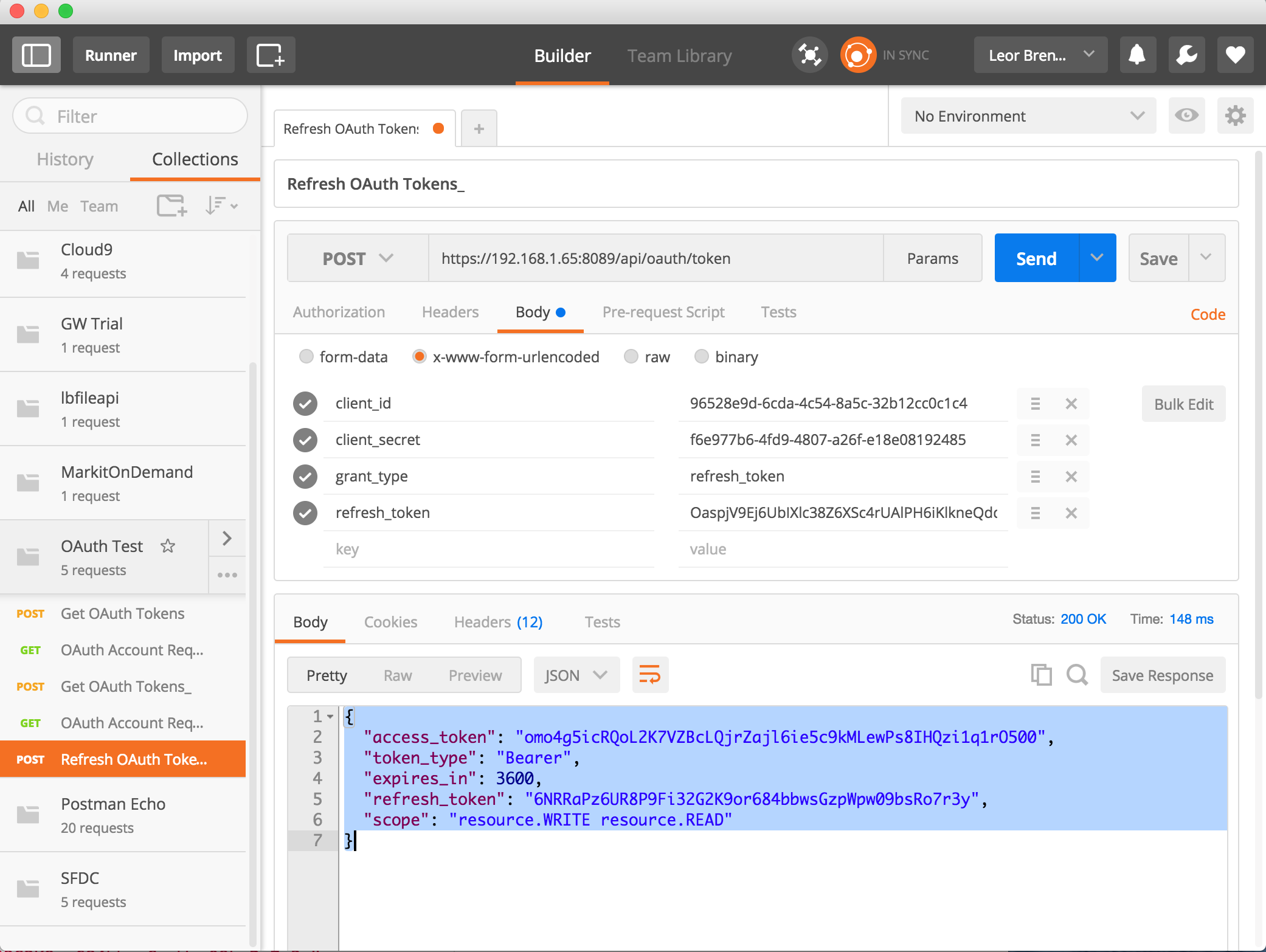 client_id=96528e9d-6cda-4c54-8a5c-32b12cc0c1c4&client_secret=f6e977b6-4fd9-4807-a26f-e18e08192485&grant_type=refresh_token&refresh_token=OaspjV9Ej6UbIXlc38Z6XSc4rUAlPH6iKlkneQdqhsyADDWith the following reply: