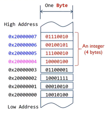 - If a variable occupies multiple bytes in memory, its address is the lowest address of all bytes it occupies.