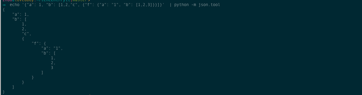 | test = {"a": 1, "b": [1,2,"c", {"f": {"a": "1", "b": [1,2,3]}}]} | |