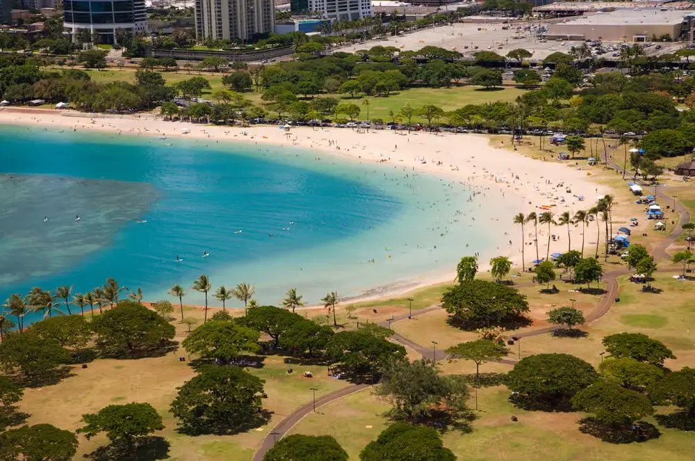 - Ala Moana Beach Another classic, artificial beach, but very popular with tourists and locals (4M+ vistors / year) Also right next door to Waikiki and Ala Moana Shopping Center. Fireworks shows every Friday night, and the park is popular for beach barbeques / picnics.