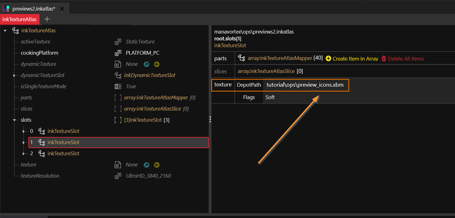 inkTextureSlotitems, set the value forDepotPathto the relative path of your xbm (tutorial\ops\preview_icons.xbm):