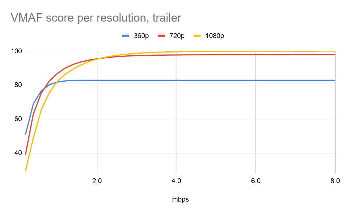 In case when we want to serve video with least amount of bitrate we use convex hull, where we use downscaling as last resource to lower bitrate with preserving as much appeal as possible, when encoder no longer able to manage that resolution.