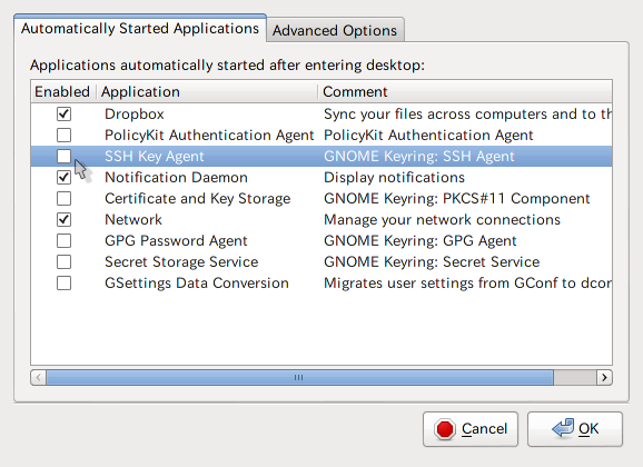 check "SSH Key Agent" in "Automatically Started Applications" tab