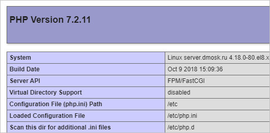 * В CentOS 8 будет установлена версия php 7.2 и выше