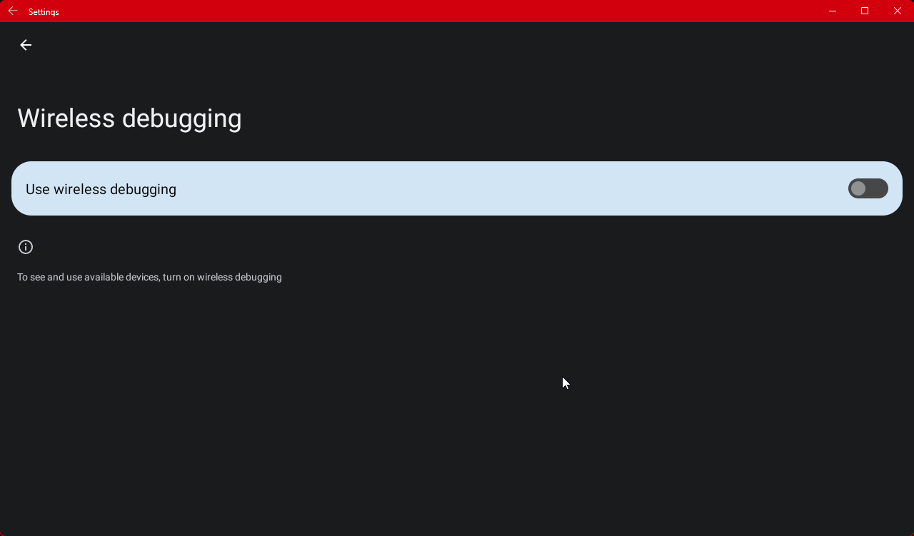 - Use your left mousebutton to scroll down until you find Wireless debugging. Tap to open it and enable it.
