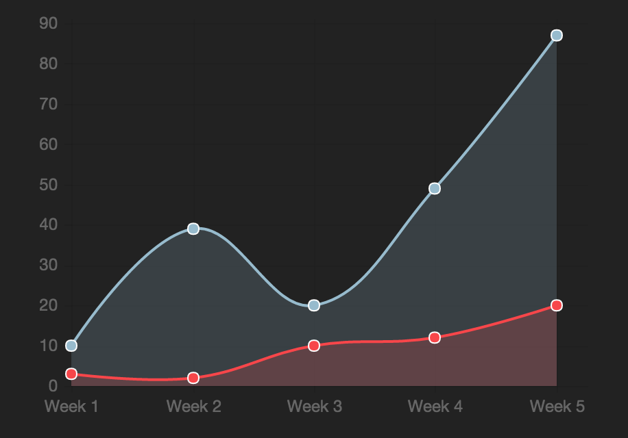 ["Week 1", "Week 2", "Week 3", "Week 4", "Week 5"], # Horizontal labels
