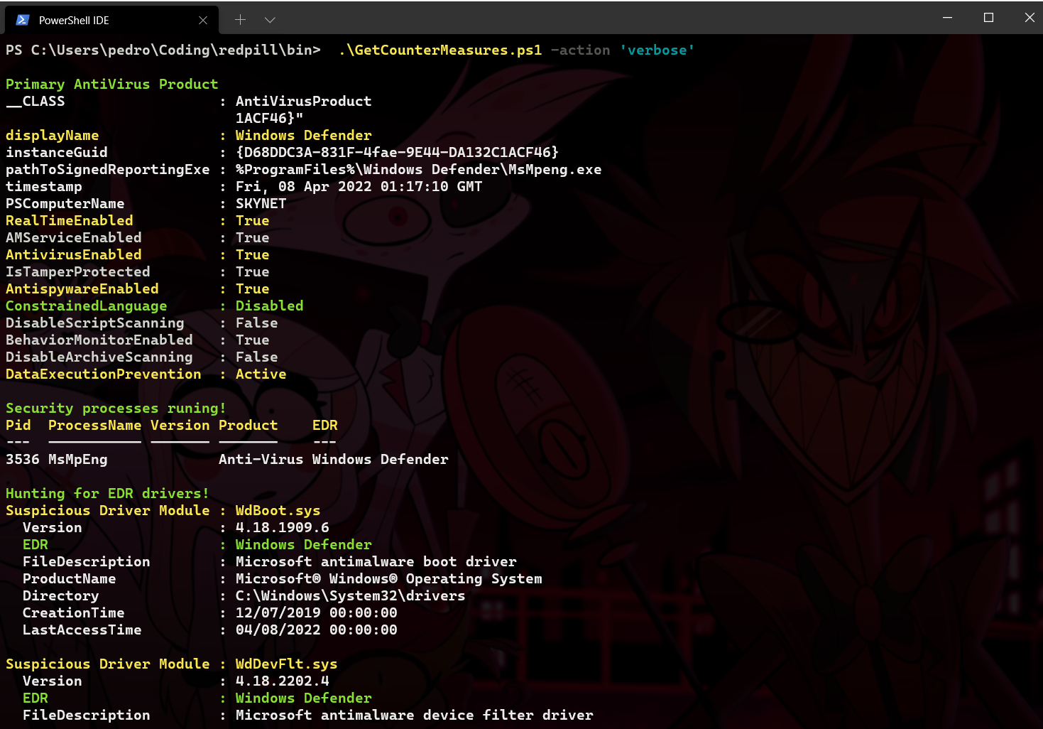 | PS C:\> .\GetCounterMeasures.ps1 -action 'verbose' | |
