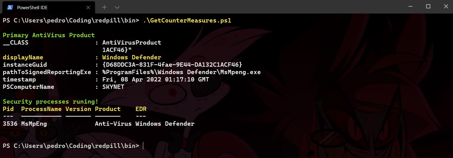 | PS C:\> .\GetCounterMeasures.ps1 | |