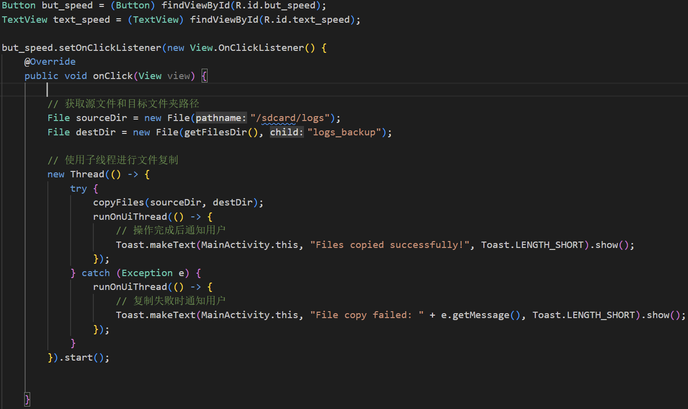 - The malicious app copies system files to its own private directory. The main code is as follows: