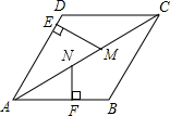 - (12河南) 如图,在菱形ABCD中,AB=2,∠DAB=60°,点E是AD边的中点.点M是AB边上一动点(不与点A重合),延长ME交射线CD于点N,连接MD、AN.当AM的值为___时,四边形AMDN是矩形. [1]