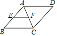 - (11兰州) 已知:如图所示的一张矩形纸片ABCD(AD>AB),将纸片折叠一次,使点A与点C重合,再展开,折痕EF交AD边于点E,交BC边于点F,分别连接AF和CE.若AE=10cm,△ABF的面积为24$cm^2$,则△ABF的周长为___cm. [24]