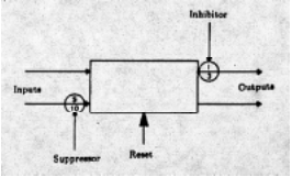 図8.2。モジュールには入力ラインと出力ラインがあります。入力信号を抑制して、抑制信号に置き換えることができます。出力信号を禁止することができます。モジュールは状態NILにリセットすることもできます。