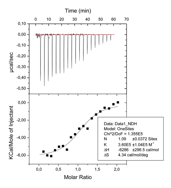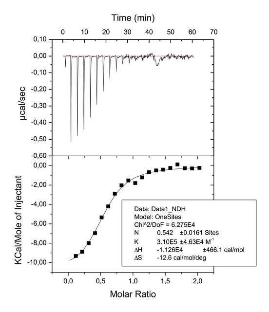 CRITICAL STEP It is important to use the same protein expression batch in all the experiments, to be sure of the relative ratios of the direct and reverse titration. It is possible that the stoichiometry n value of the direct experiment is not a unit value, denoting that the real concentration of functional protein is different from that inserted. In this case, it is very important to use the same protein expression batch in the reverse experiment in order to correctly compare the relative n values of the two experiments.