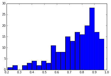 虚线是每个样本对应的概率。 感觉比之前准确一些。 这一次,对数的可能性约为-20,这个数字要大得多。