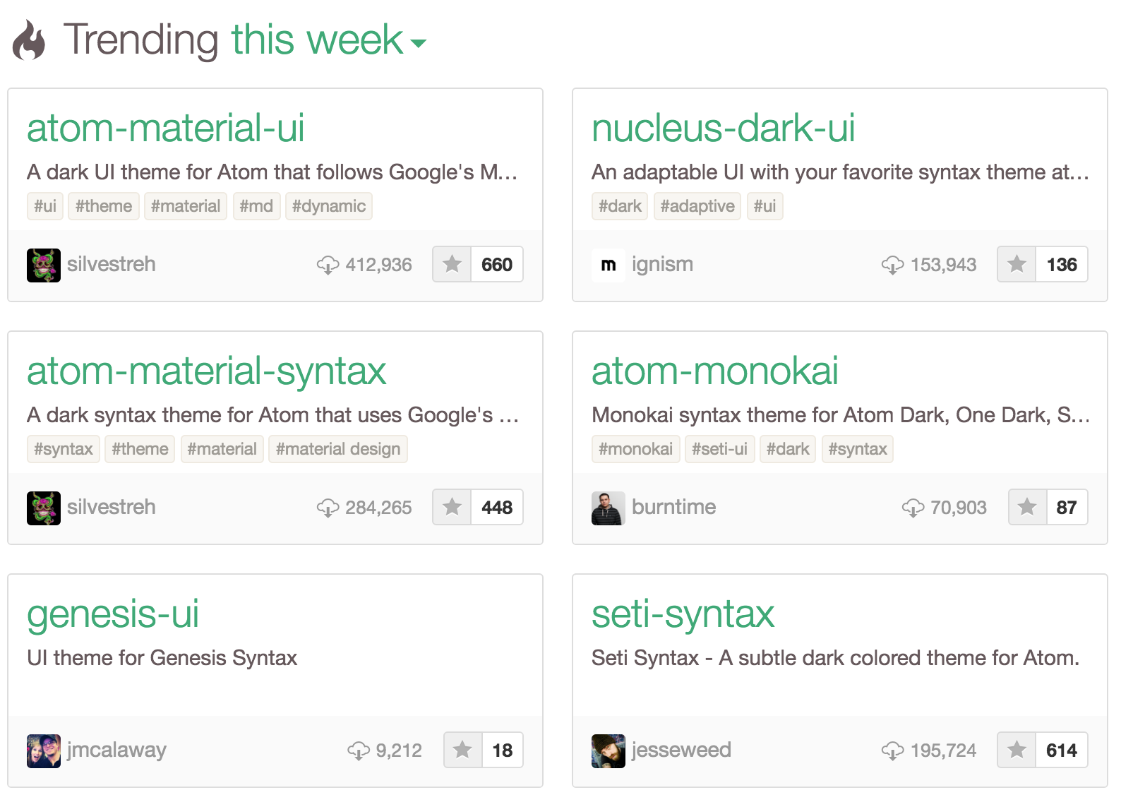 apm install advanced-open-file atom-beautify atom-pair autoclose-html autocomplete-html-entities autocomplete-ruby autoprefixer dash emmet environment linter linter-eslint linter-jscs merge-conflicts react redux-snippets go-plus file-icons