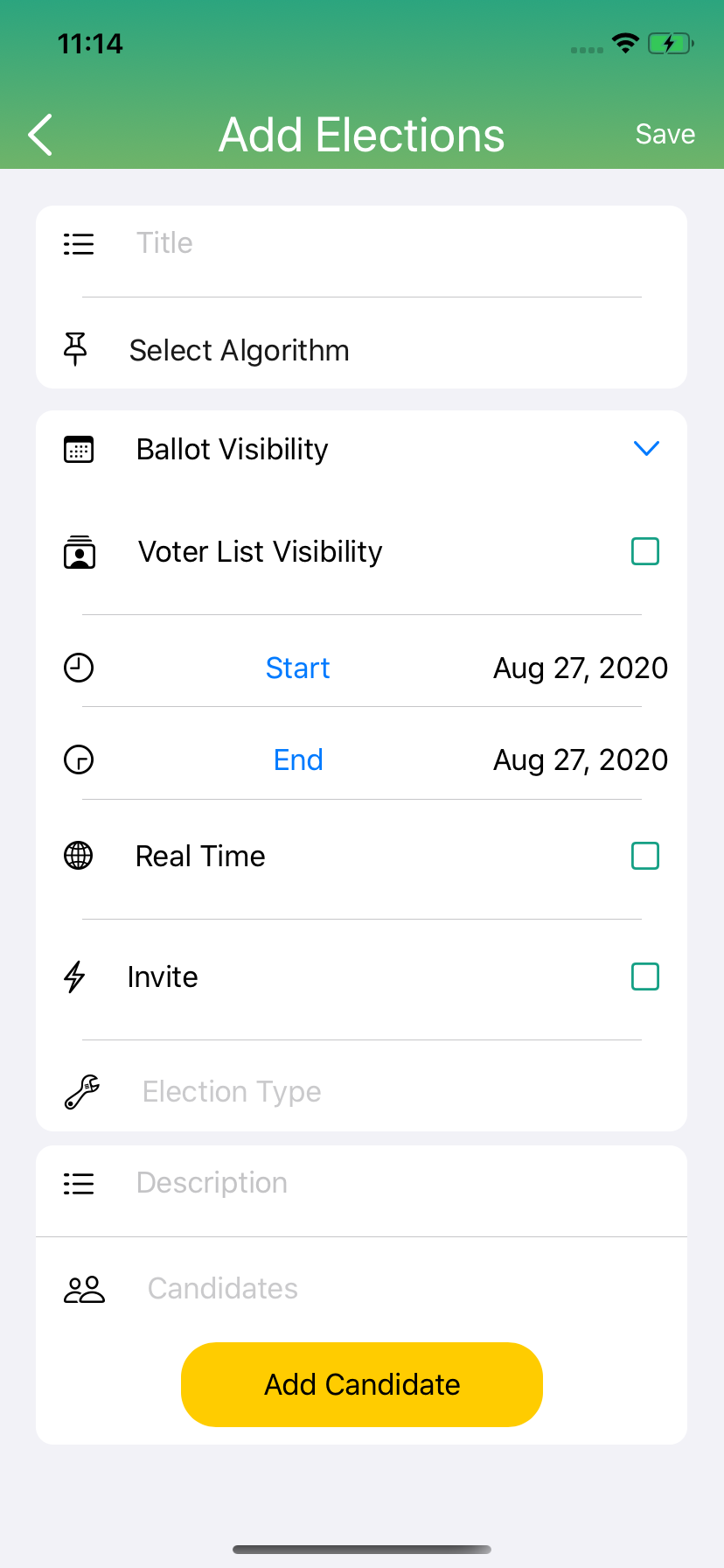 CredentialsandxAuth user defaultsand login. - Deleted all elections from the database when logged out.