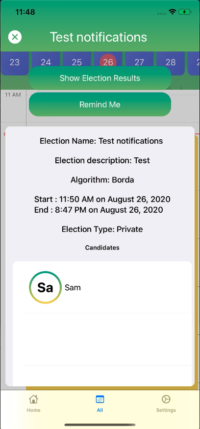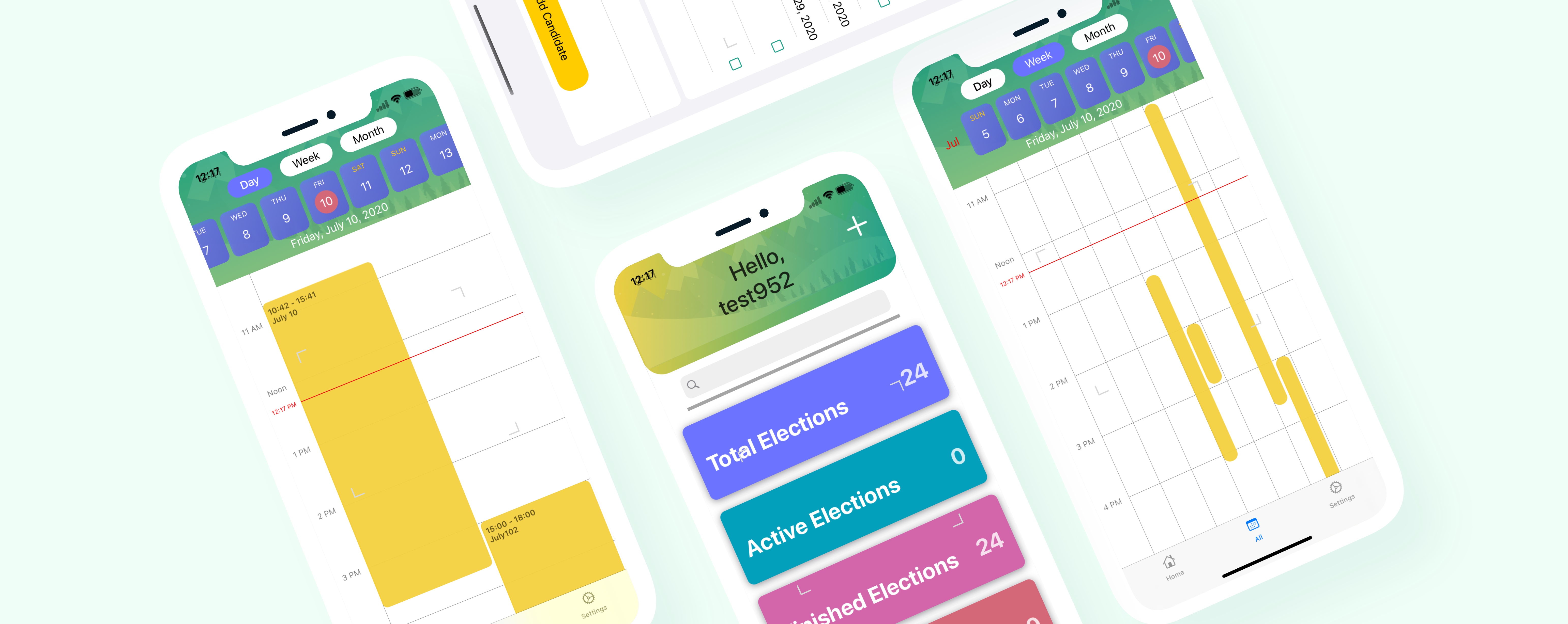After this, in the 2nd phase, I worked with the most challenging and main highlight of the project the 'Calendar View' for election events. I modified the 'KVKCalendar' according to my needs, there were many challenges here as it was difficult to alter anything in this framework as many of the elements were dependent on each other. But eventually, with time I was able to overcome them. After the calendar view, I built the 'Create Election View', here I added various utility functions; eg for handling dates, animations, badge popups, element transitions, election model, date picker, handled JSON data, improved navigation; and made the navigation minimal and easy to use. Furthermore, I added UI Tests.