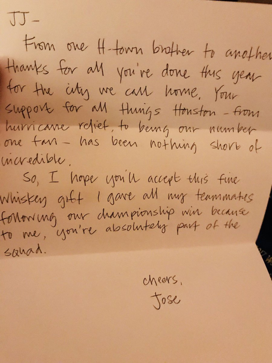 - 1190 / 57 (whirlwindjenn): [Last night] JT pulled JJ up on stage for a round of shots and celebrated all he’s done for our great city! JT: “Y’all are so lucky to have such a great ambassador for this city.”