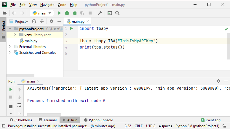 While it's possible to get data from a web API with the Python standard library, it's a lot easier with third-party libraries. My personal favorite and recommended library is tbapy. In order to install it, follow these steps: