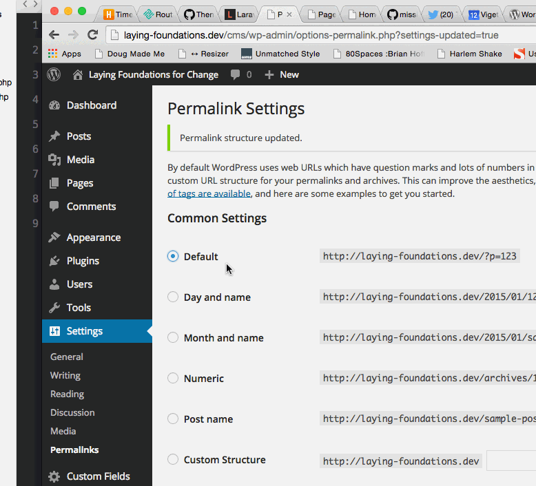 ['about']or['vision']argument, you're basically listening to a request made to theaboutorvisionpage URI:In order to make this to work, you need to change the permalink structure to anything except default.