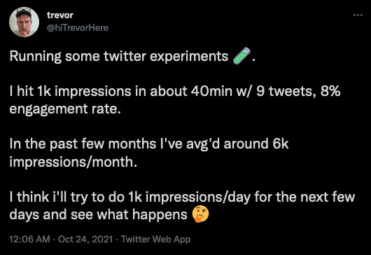 I started experimenting with Twitter because I have been working on an info product (geared toward helping developers show their work online). Everybody who's had success in this space talks about building an audience either before or while you build your deliverable.