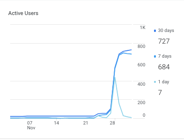 On the days where I had lots of visitors, I cross-posted to other relevant online communities. Some of my posts didn't feel relevant so I didn't share them as widely, hence the plateu.