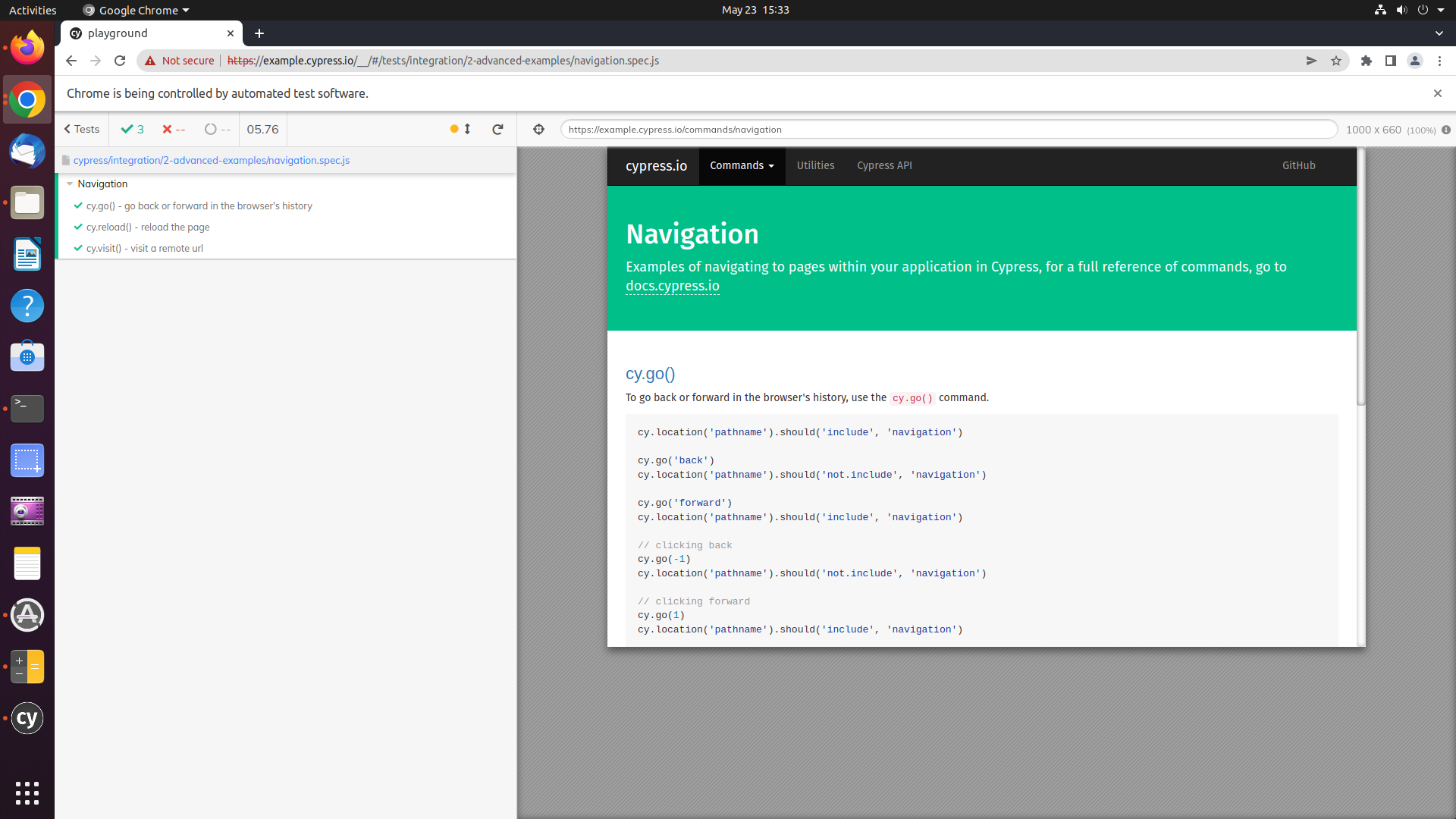 | test anything that runs in a browser. Cypress enables you to write all types of tests: End to End, Integration, and Unit | |