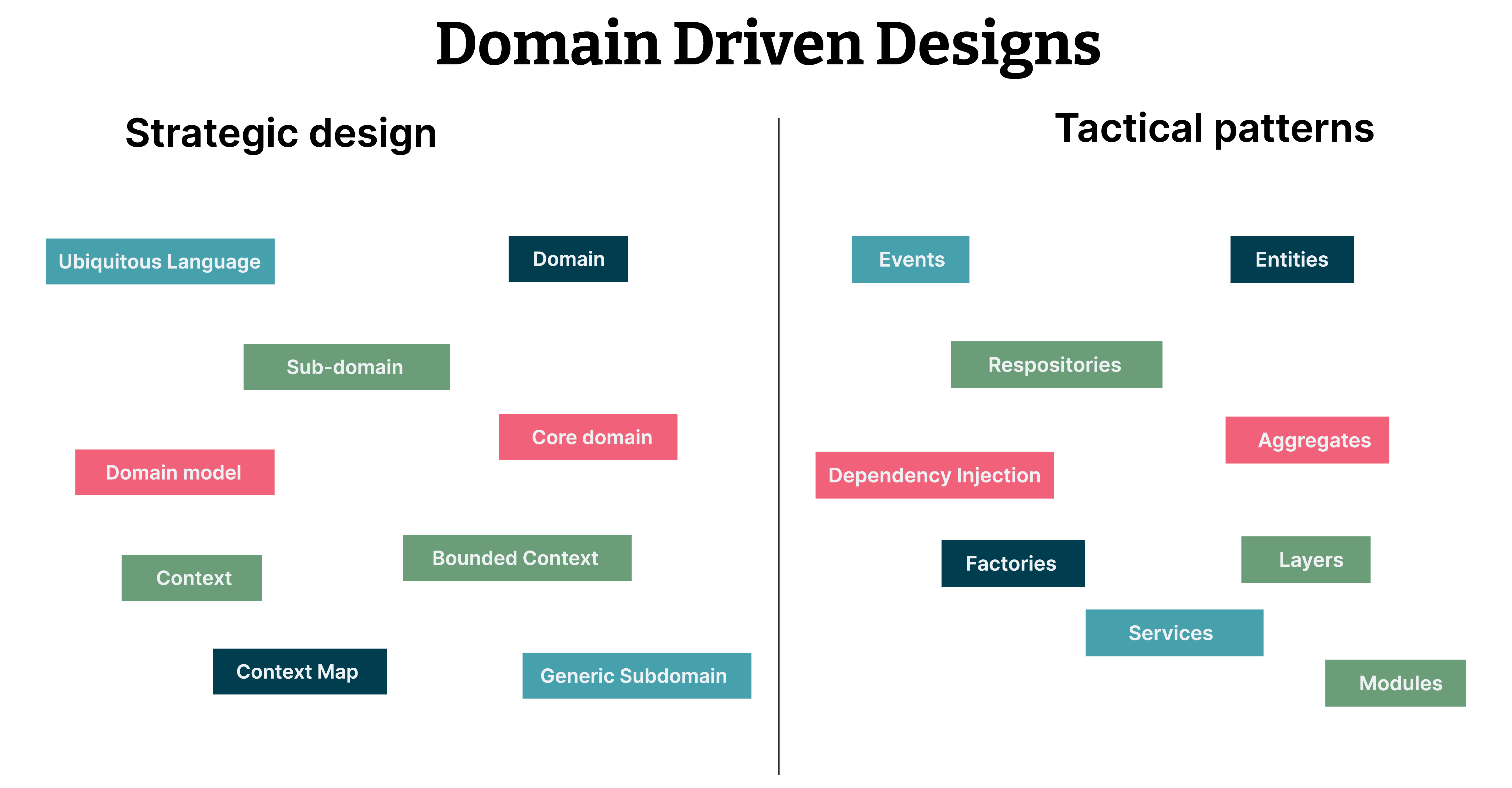Domain driven design is an approach that leverages strategic and tactical design patterns to model the business logic domain core