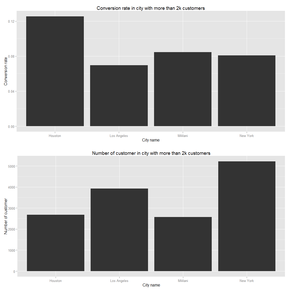 grid.arrange(g.state.not_prem,g.state.premium,g.state.not_prem.state,g.state.premium.state,ncol=2)grid.arrange(g.zip.not_prem.all,g.zip.premium.all,g.zip.not_prem.focus,g.zip.premium.focus,ncol=2)grid.arrange(g.zip.not_prem.city,g.zip.premium.city,ncol=2)grid.arrange(g.zip.conversion,g.zip.observation)We can see that in the USA, we should focus on Houston and New York that have respectively the highest number of conversion for a "big city" and the highest number of customer. If we keep our logic, we should try to attrack young female people with promotion.