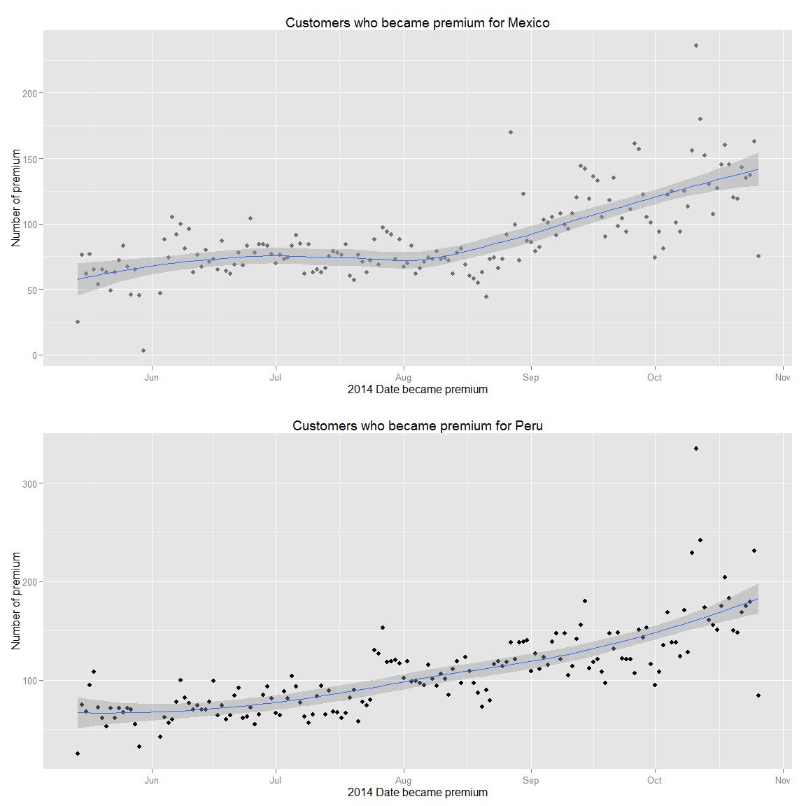 ds<-mutate(ds,premium_join_delay=as.numeric(premium_since.date-date_joined.date))ds.fc_by_date_region<- ds %>% filter(!is.na(premium_since.date)) %>% group_by(premium_since.date,region_id) %>% summarise(n=n()) %>% ungroup() %>% arrange(premium_since.date)